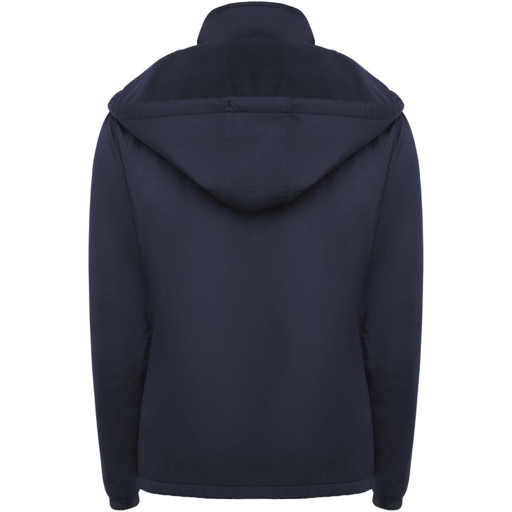 Lehká nepromokavá bunda. Vysoký límec a skládací kapuce s regulací. Podšívka z mikrofleecu. Přední zip a chránič brady. Elastické manžety. Dvě boční kapsy na zip. Vnitřní levá náprsní kapsa. Odnímatelný štítek. Nepromokavá. Odolná proti větru. Model měří 184 cm a má na sobě velikost L, modelka měří 174 cm a má na sobě velikost S.