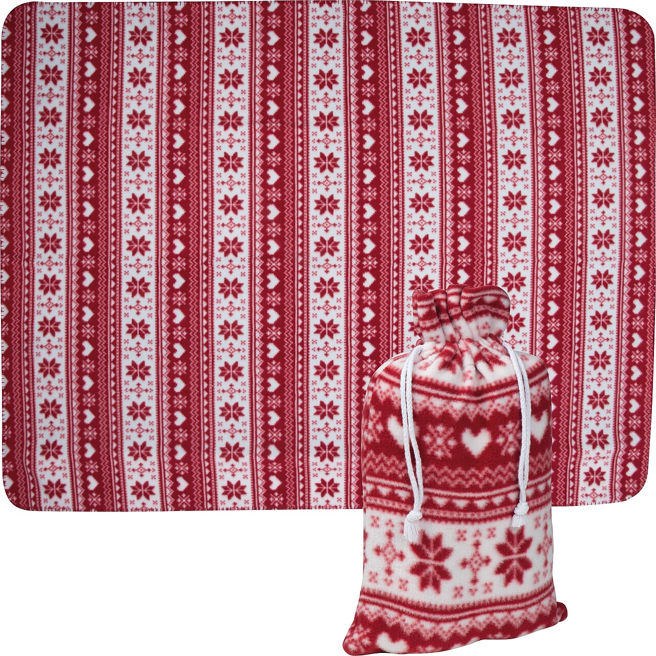 Fleecová deka (200g/m2) s vánočním motivem dodávaná se stahovacím obalem. Vhodná na cesty. Rozměry: 130 x 170 cm.