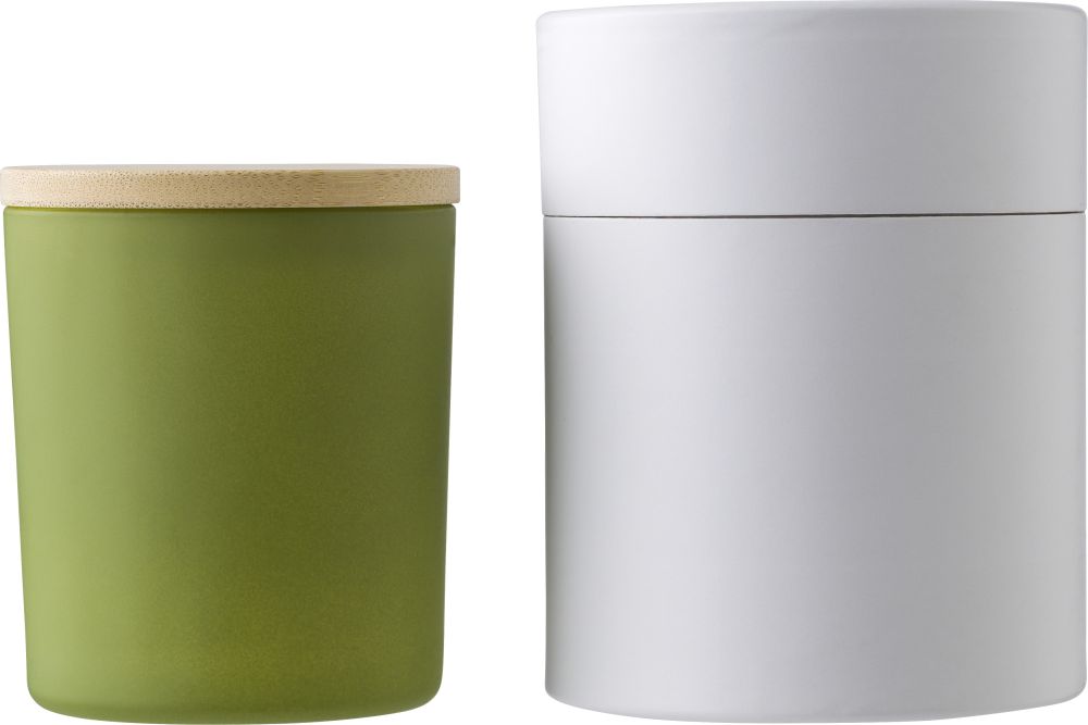 Velká skleněná svíčka s bambusovým víčkem, vůně jasmínu, zelená