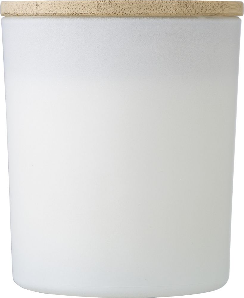 Sklenice se svíčkou z rostlinného vosku s bambusovým víčkem. Svíčka obsahuje převážně rostlinný vosk (karnaubský vosk) a její doba hoření je cca 46 hodin. Vůně svíčky se rozlišuje dle její barvy. Červená = skořice, bílá = vanilka, černá = santalové dřevo, zelená = jasmín. Každý kus je balen v bílé tubě. Rozměry: O 10.1 cm