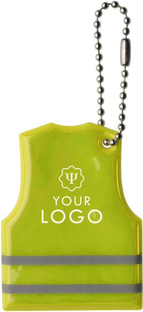 Reflexní přívěsek ve tvaru bezpečnostnívesty s řetízkem. Není bezpečnostnímdoplňkem dle normy EN13356. Rozměry: 4,4 × 5,9 cm.