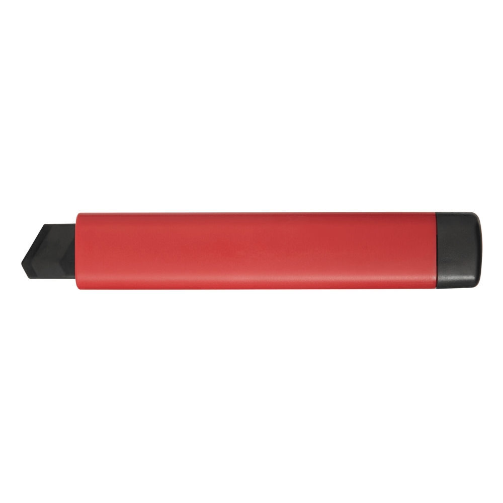 Řezací nůž s flexibilní černou odlamovací čepelí 18 mm (10 segmentů čepele a náhradní čepel), automatickým zastavením, plastovým pouzdrem a ocelovým vodítkem čepele, pro lehké až těžké řezání, v krabičce. Rozměry: 16,5 x 2,8 x 1,5 cm