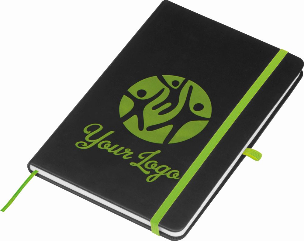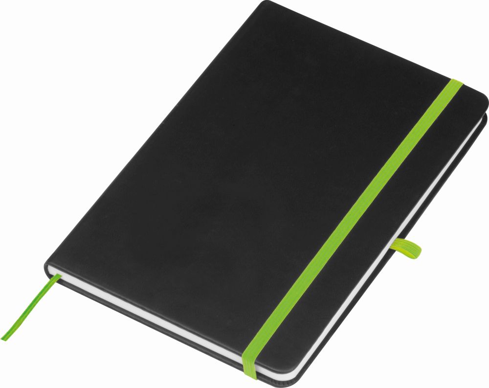 Zápisník formátu A5 s obálkou z umělé kůže. Zápisník má 192 linkovaných stran, barevnou záložku, poutko na pero a gumičku na zavírání. Rozměry: 14,2 x 1,5 x 21 cm