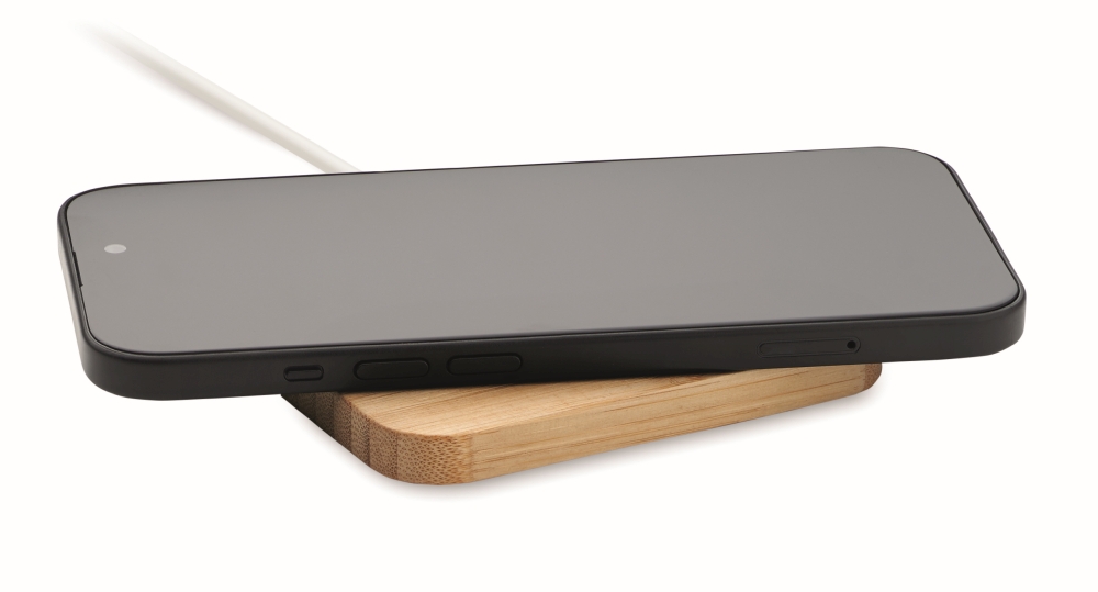 15W bezdrátová nabíječka z bambusu, světle hnědá