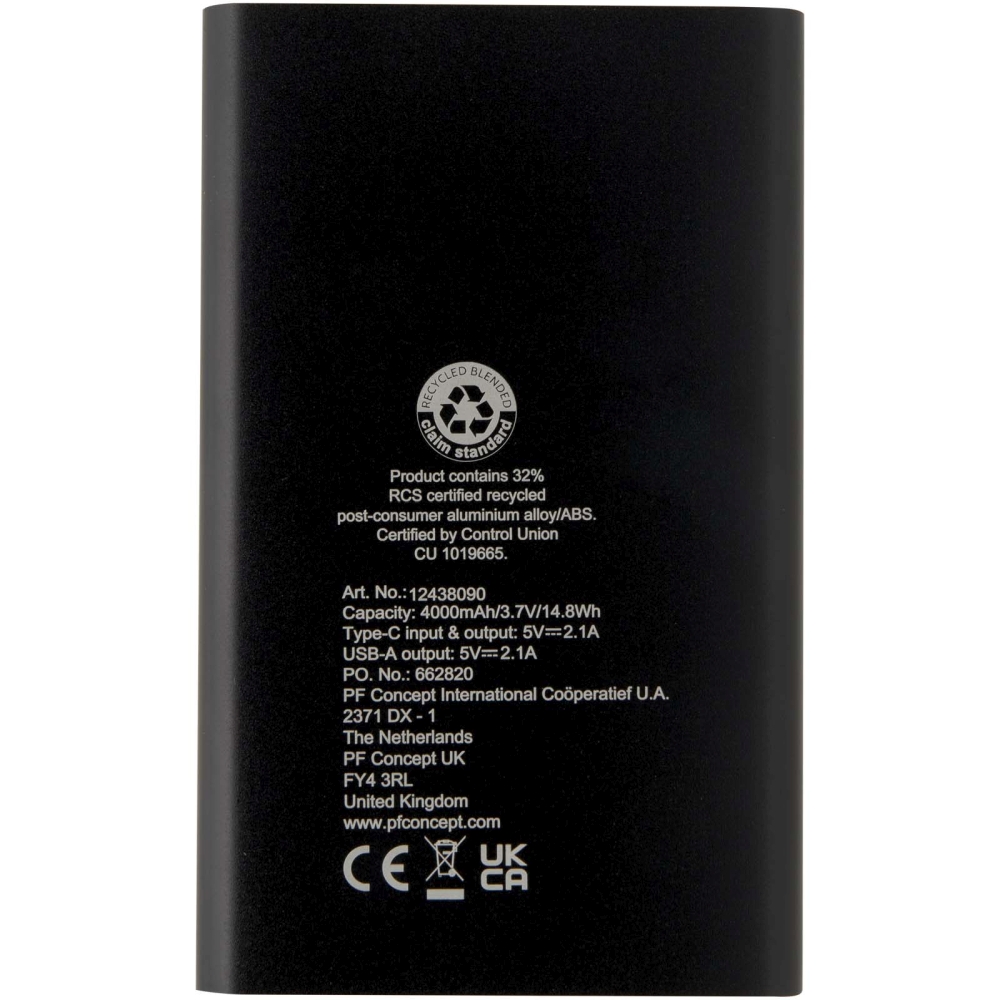 4000mAh powerbanka typu C z recyklovaného hliníku, černá