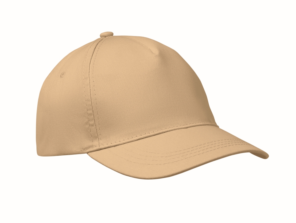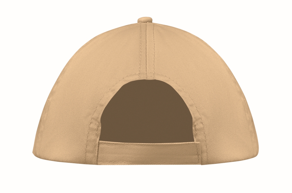 Pětipanelová baseballová čepice z bavlněného kepru 150 gr/m2 s nastavitelným zapínáním na suchý zip a 2 vyšívanými očky ve stejné barvě. Velikost 7 1/4. Rozměry: 25 x 16 x 15 cm