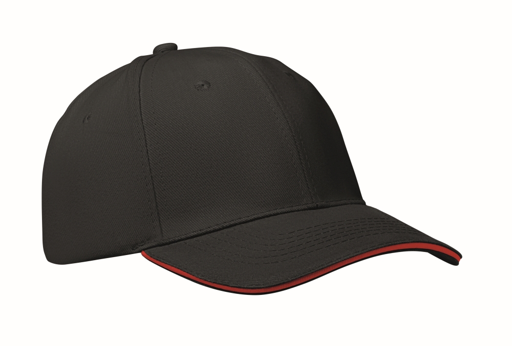 Šestipanelová baseballová čepice z broušené bavlny 260 gr/m2 se stříbrnou ocelovou sponou a 6 vyšívanými očky ve stejné barvě. Velikost 7 1/4. Rozměry: 21 x 17 x 11 cm