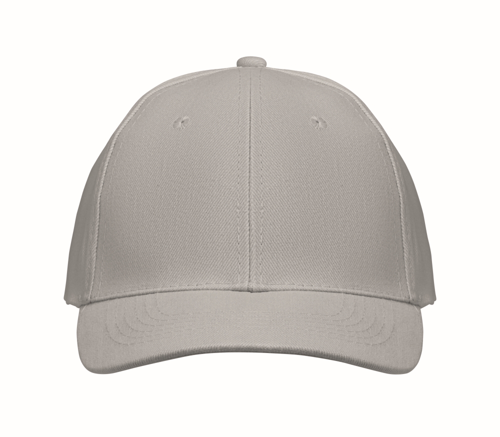 Šestipanelová baseballová čepice z broušené bavlny 260 gr/m2 se stříbrnou ocelovou sponou a 6 vyšívanými očky ve stejné barvě. Velikost 7 1/4. Rozměry: 21 x 17 x 11 cm