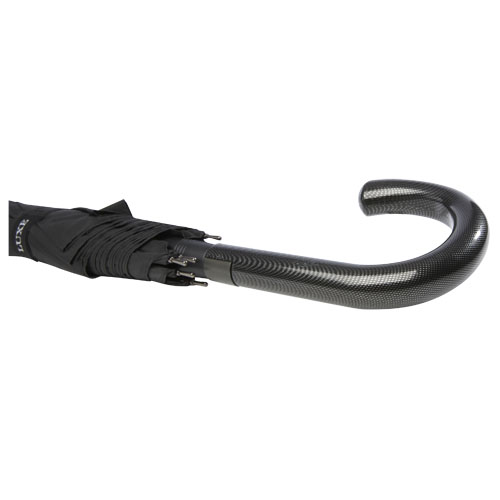 Deštník s automatickým otevíráním, potahem z polyesterového hedvábí a robustní černou kovovou tyčí. Vysoce kvalitní celolaminátový rám zajišťuje maximální flexibilitu ve větrných podmínkách. Zahnutá rukojeť s povrchovou úpravou vzhledu uhlíkové oceli a černé poniklované špičky. Tkaná etiketa na potahu s nápisem Luxe a zapínací pásek. Rozměry: 84 x O 114 cm