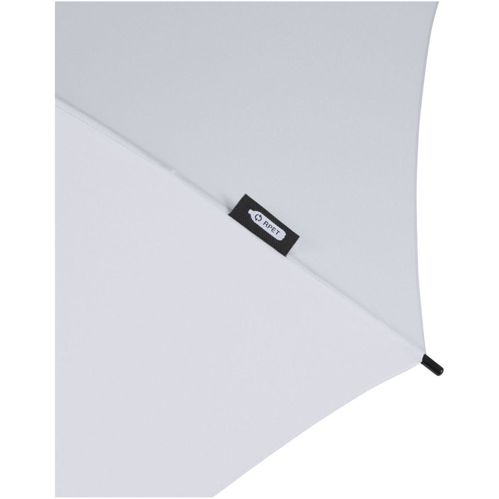 Deštník se stříškou z recyklovaného PET polyesteru ponžé a automatickým otevíráním, 23”. Má robustní kovovou násadu, rám ze skelných vláken a pohodlnou EVA rukojeť s barevně ladícím koncem. Na každém z panelů je velká dekorativní plocha. Rozměry: 102 x O 85 cm.