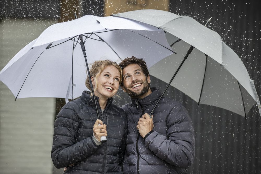 Deštník se stříškou z recyklovaného PET polyesteru ponžé a automatickým otevíráním, 23”. Má robustní kovovou násadu, rám ze skelných vláken a pohodlnou EVA rukojeť s barevně ladícím koncem. Na každém z panelů je velká dekorativní plocha. Rozměry: 102 x O 85 cm.