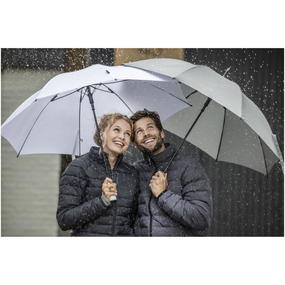 Deštník se stříškou z recyklovaného PET polyesteru ponžé a automatickým otevíráním, 23”. Má robustní kovovou násadu, rám ze skelných vláken a pohodlnou EVA rukojeť s barevně ladícím koncem. Na každém z panelů je velká dekorativní plocha. Rozměry: 102 x O 85 cm.