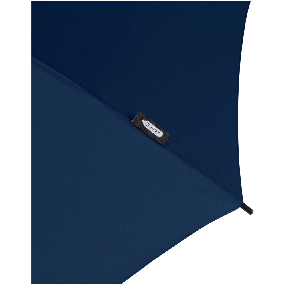 Deštník se stříškou z recyklovaného PET polyesteru ponžé a automatickým otevíráním, 23”. Má robustní kovovou násadu, rám ze skelných vláken a pohodlnou EVA rukojeť s barevně ladícím koncem. Na každém z panelů je velká dekorativní plocha. Rozměry: 102 x O 85 cm.