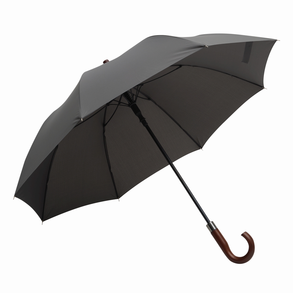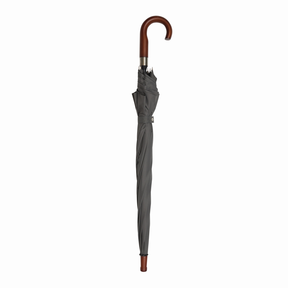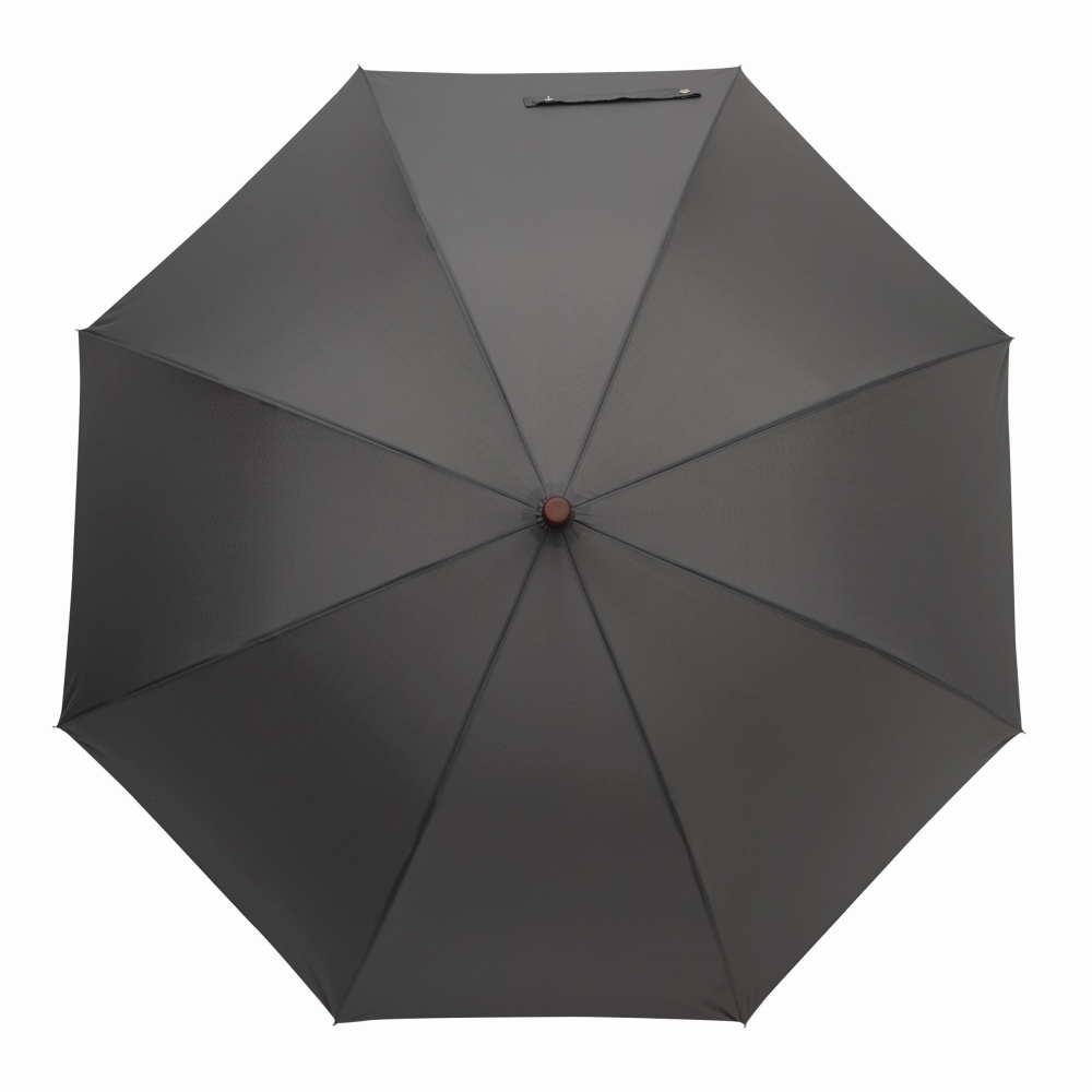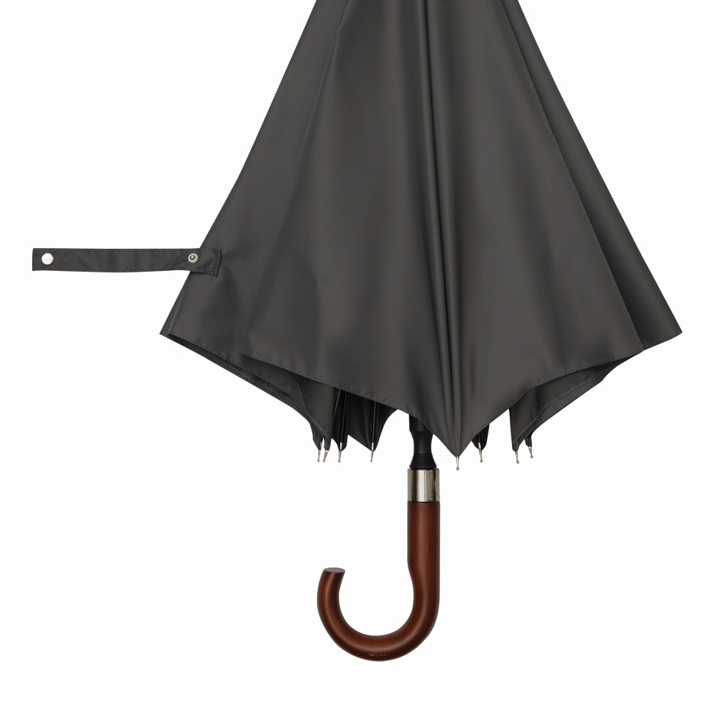 Automatický golfový deštník s černým kovovým shaftem, sklolaminátovými žebry, kovovými hroty, dřevěná zakřivená rukojeť s integrovaným tlačítkem, dřevěná horní část, potah z polyesteru pongee prvotřídní kvality, uzavírací pásek s drukem. Rozměry: O116 cm / 95,5 cm