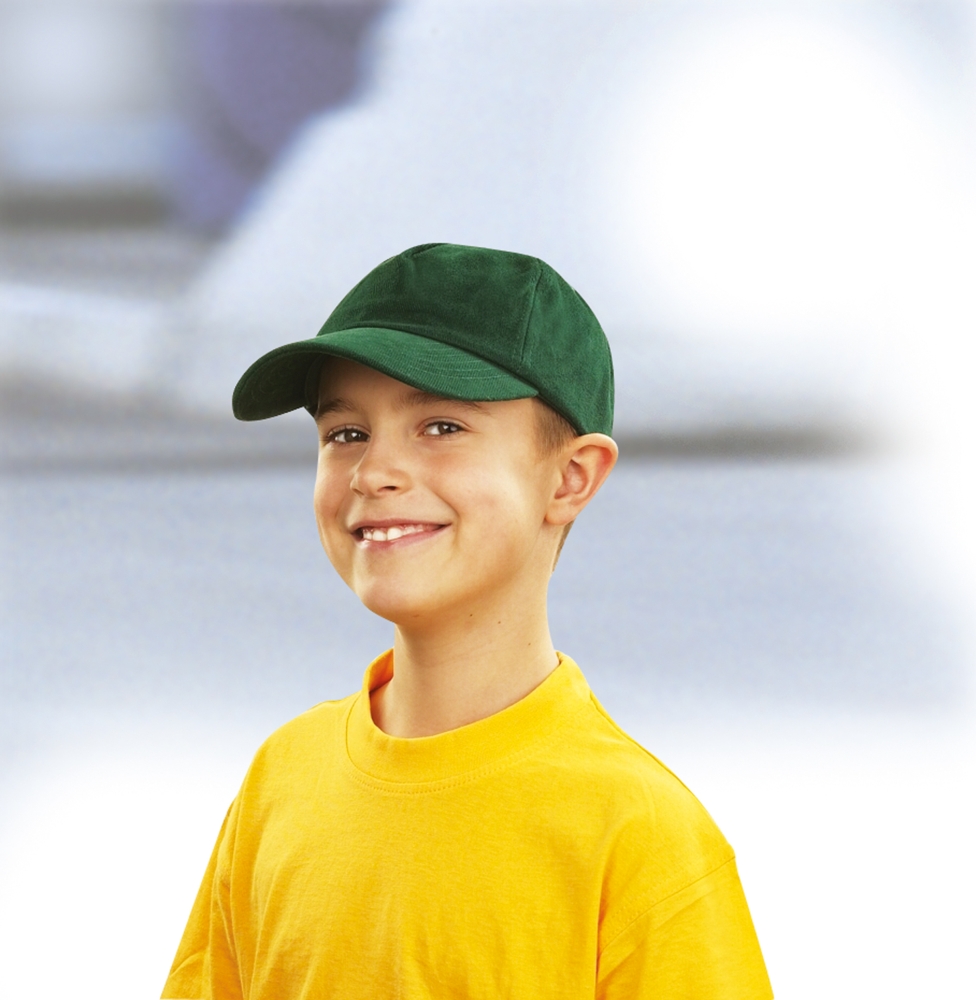 Dětská pětipanelová kšiltovka s velkým kšiltem s 6 ozdobnými švy, polstrovaným saténovým potítkem, 4 obšitými větracími otvory a suchým zipem. Velikost: od 4 let – 54 cm.