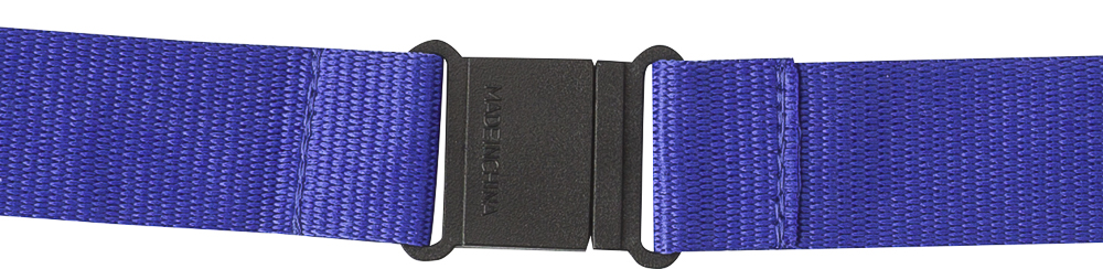 Šňůrka na krk s karabinou, plastovým trojzubcem a bezpečnostní sponou za krkem, materiál polyester. Rozměry: 50 × 2,5 × 0,1 cm.