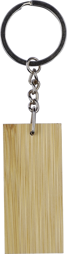 Bambusová klíčenka s černou pogumovanou nerezovou ocelovou gravírovací destičkou uvnitř, v obdélníkovém tvaru. Barva po gravírování lesklý chrom. Jednotlivě baleno v hnědé kartonové obálce.Rozměry: 2,6 x 10,3 x 0,5 cm