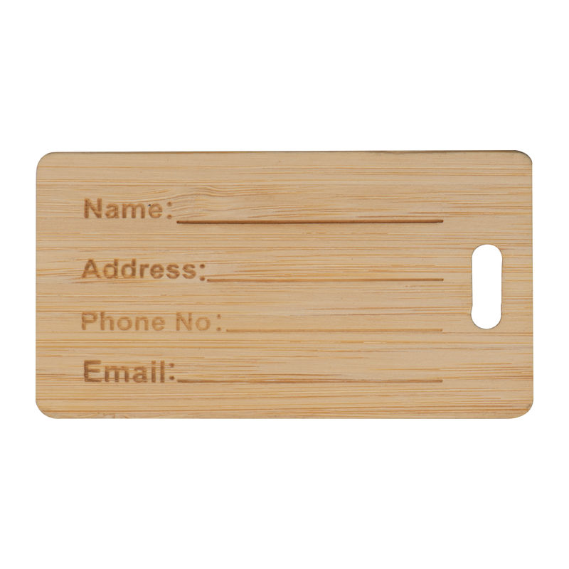 Visačka na zavazadlo z udržitelného bambusu. Rozměry: 9 x 0,2 x 4,4 cm