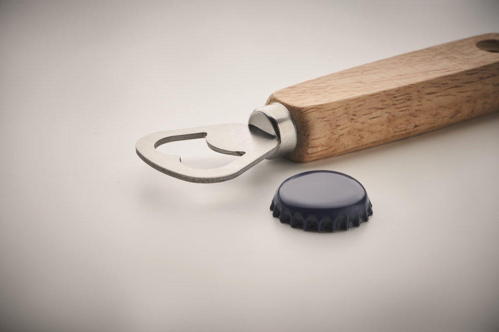 Barmanský otvírák na láhve s dřevěnou rukojetí. Rozměry: 4 x 14,4 x 2,2 cm. Materiál: dřevo