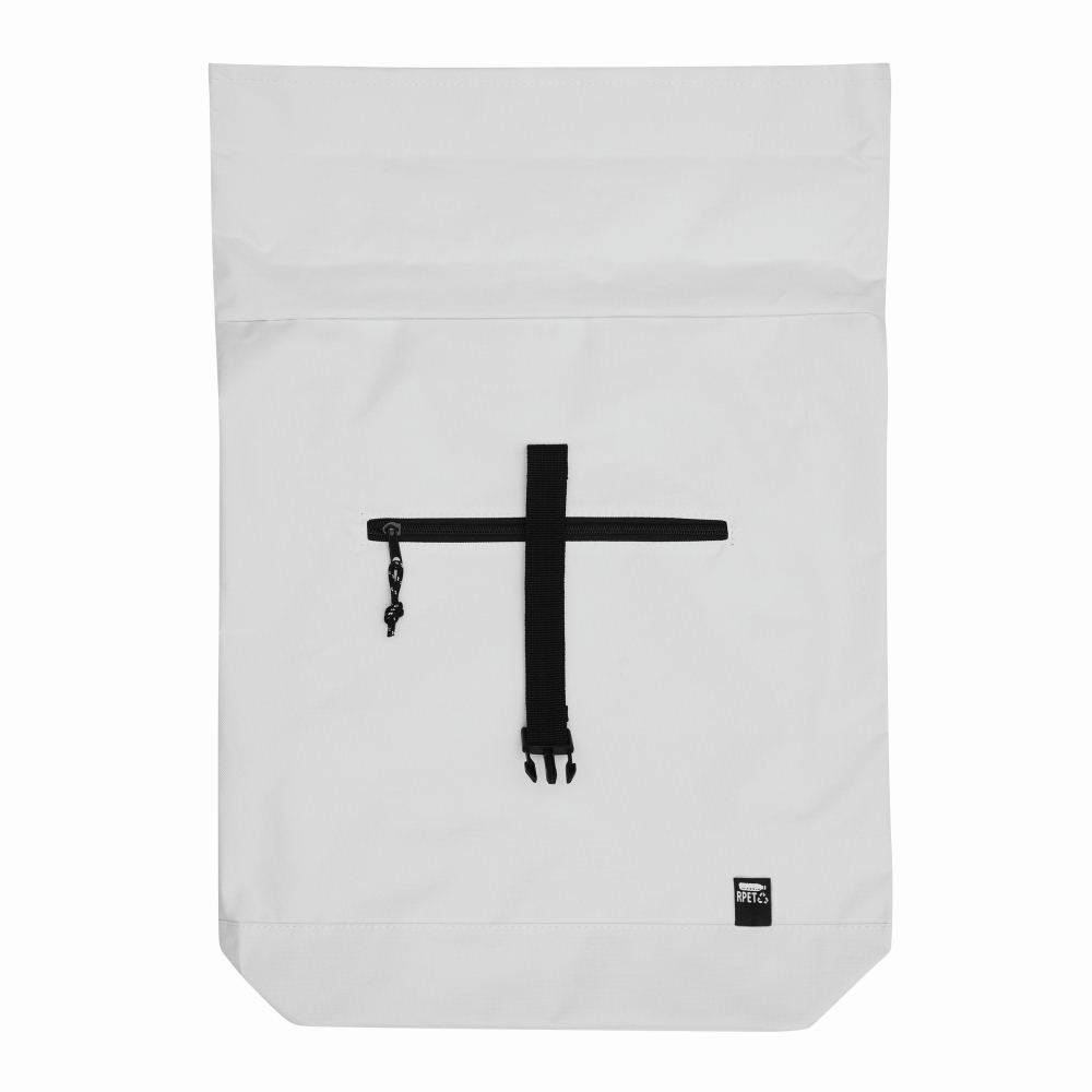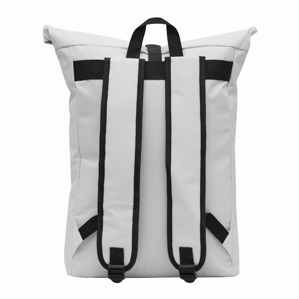 Batoh vyroben z recyklovaného plastu (RPET), přední přihrádka na zip, velká hlavní přihrádka s polstrovanou vnitřní přihrádkou na notebook nebo tablet, horní část lze srolovat a upevnit pomocí patentky, madlo, polstrované dno, ramenní popruhy, zádový panel. Rozměry: cca 32 x 13 x 40-60 cm