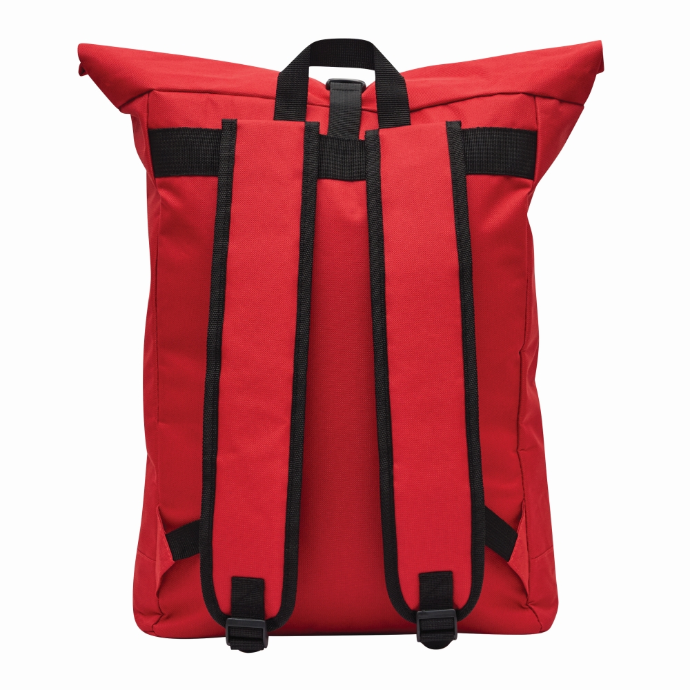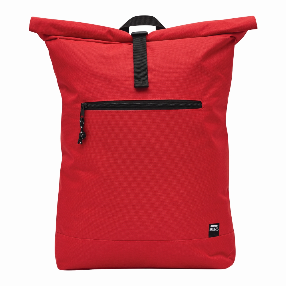 Batoh vyroben z recyklovaného plastu (RPET), přední přihrádka na zip, velká hlavní přihrádka s polstrovanou vnitřní přihrádkou na notebook nebo tablet, horní část lze srolovat a upevnit pomocí patentky, madlo, polstrované dno, ramenní popruhy, zádový panel. Rozměry: cca 32 x 13 x 40-60 cm