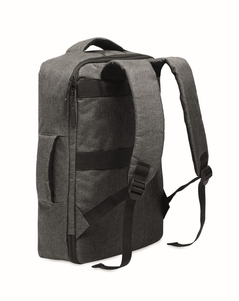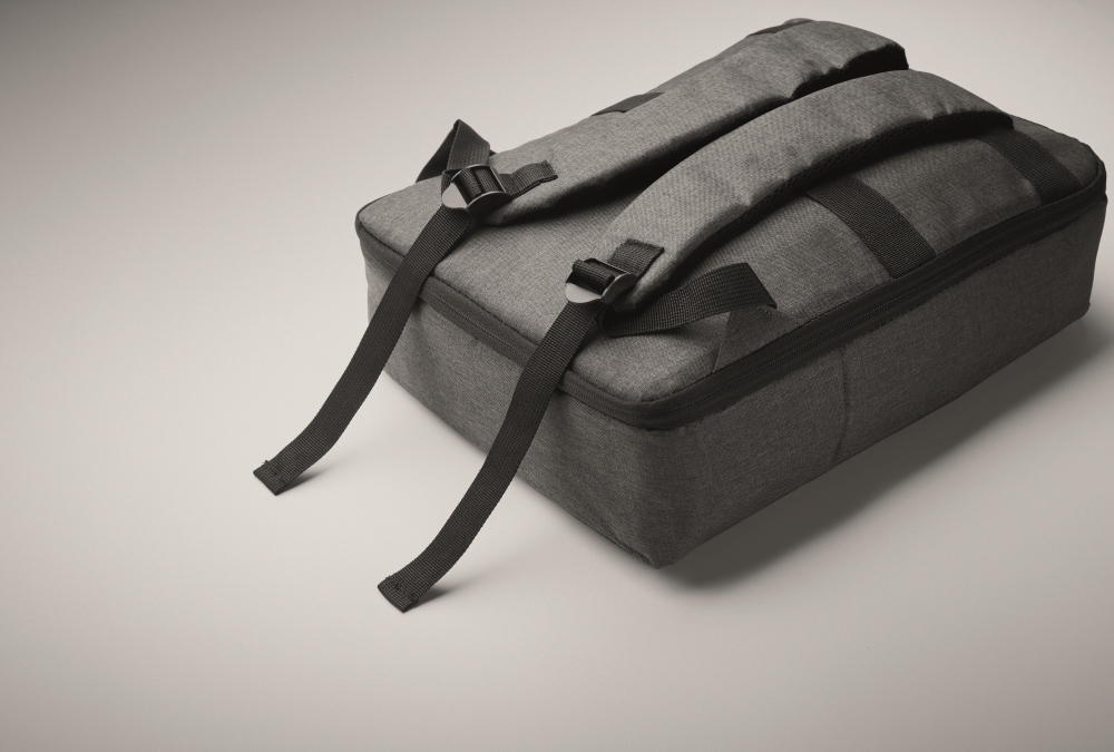 Batoh na 15palcový notebook z materiálu 300D RPET a podšívkou z materiálu 210D RPET. Obsahuje přihrádku na notebook, 2 vnitřní kapsy na drobnosti, 2 vnitřní kapsy na pera a 2 polstrovaná ucha na přenášení. Měkce polstrovaná záda a ramenní popruhy. Držák na vozík. Rozměry: 41 x 29 x 11cm. Materiál: RPET