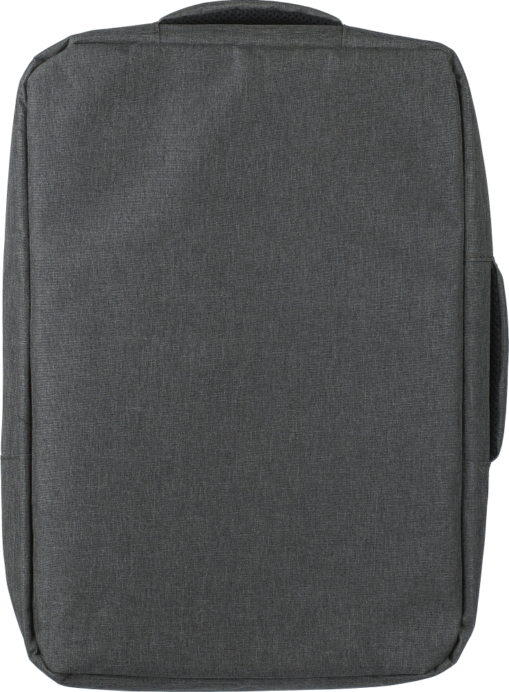 Batoh na notebook z polyesteru rPET 300D s podšívkou z rPET 210D. Má velkou přihrádku na zip s několika vloženými kapsami, kapsu na suchý zip pro 15palcový notebook a objem 12 litrů. Design zahrnuje zesílenou, odvětrávanou zadní stranu, nastavitelné ramenní popruhy, boční rukojeť a popruh na kolečkách. Nosnost: 10 kg. Rozměry: 30 x 11 x 42 cm