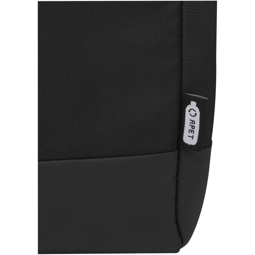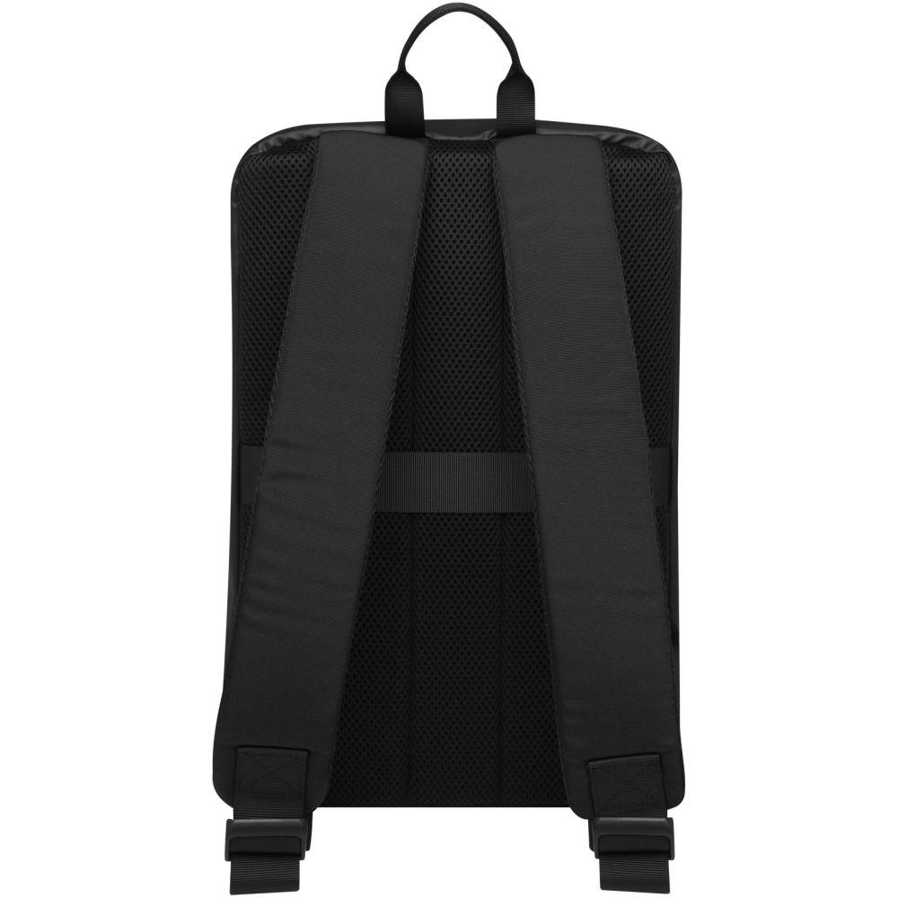 Batoh je vyroben z odolného recyklovaného polyesteru 900D GRS a má všechny potřebné funkce. Obsahuje polstrované pouzdro na notebook vhodné pro 15,6" notebook, extra pouzdro na malý notebook nebo tablet a kapsy na zip na menší předměty. Uvnitř je navíc elastický pásek pro umístění láhve s vodou. Na zadní straně batohu je pohodlný elastický popruh, který usnadňuje připevnění k vozíku. Rozměry: 43 x 28 cm.