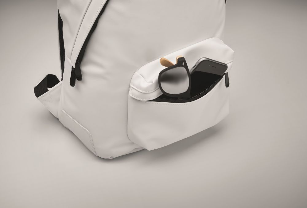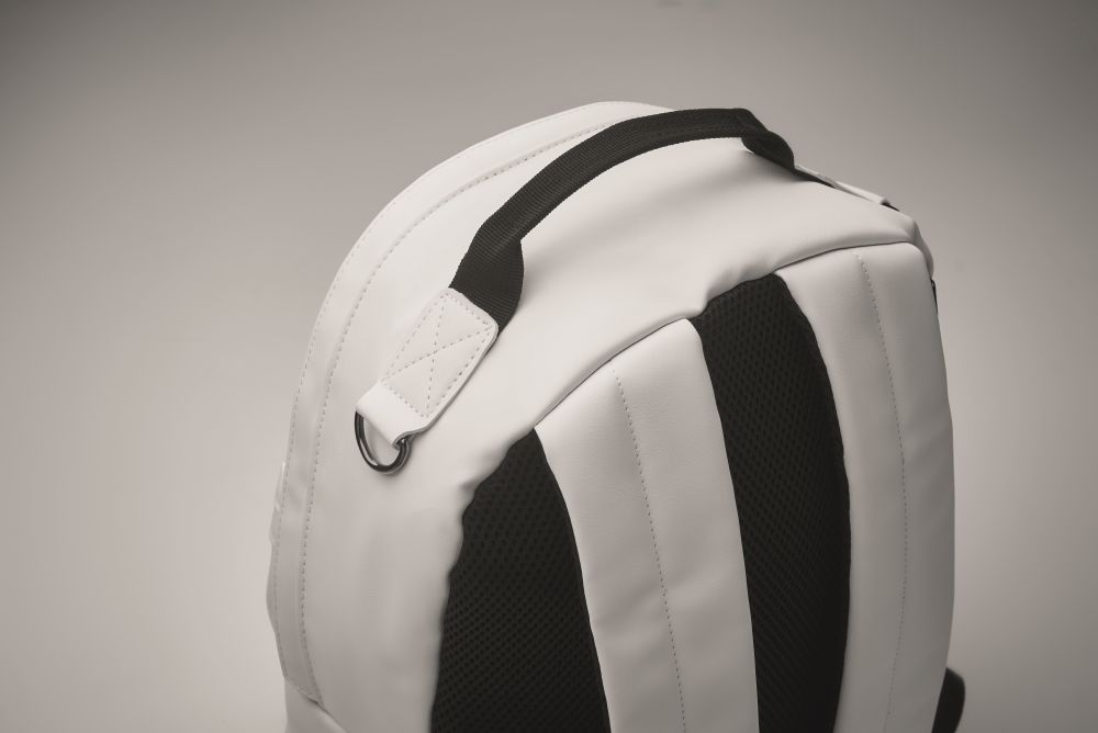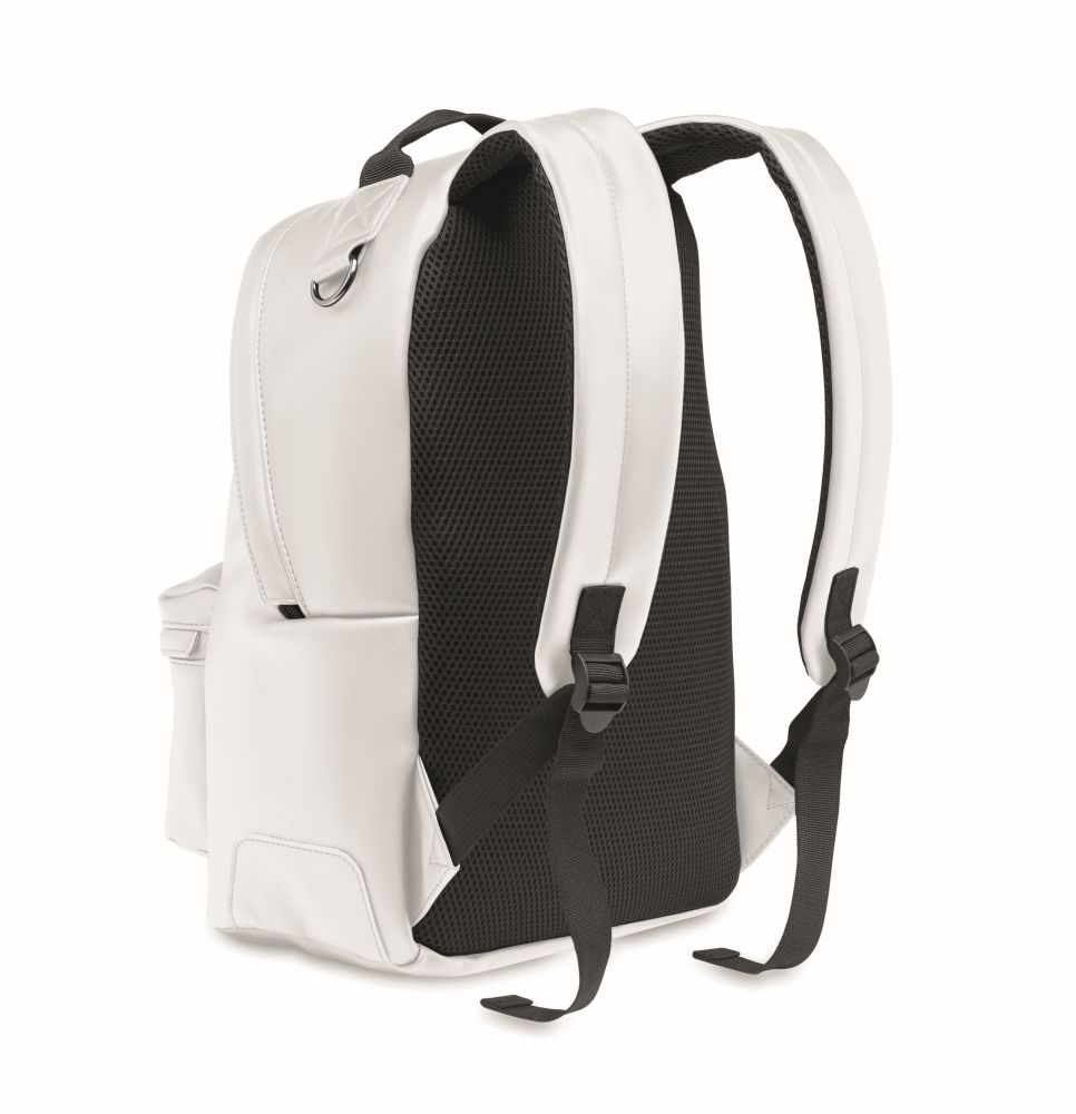 Batoh na 15 notebook z měkkého PU s polstrovanými zády a vyztuženým dnem. Přední kapsa na zip. Podšívka je z materiálu 210D RPET. Rozměry: 28x15x40cm