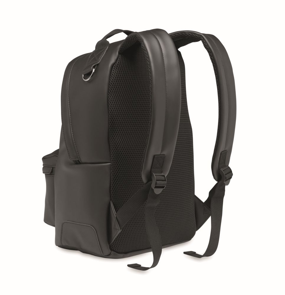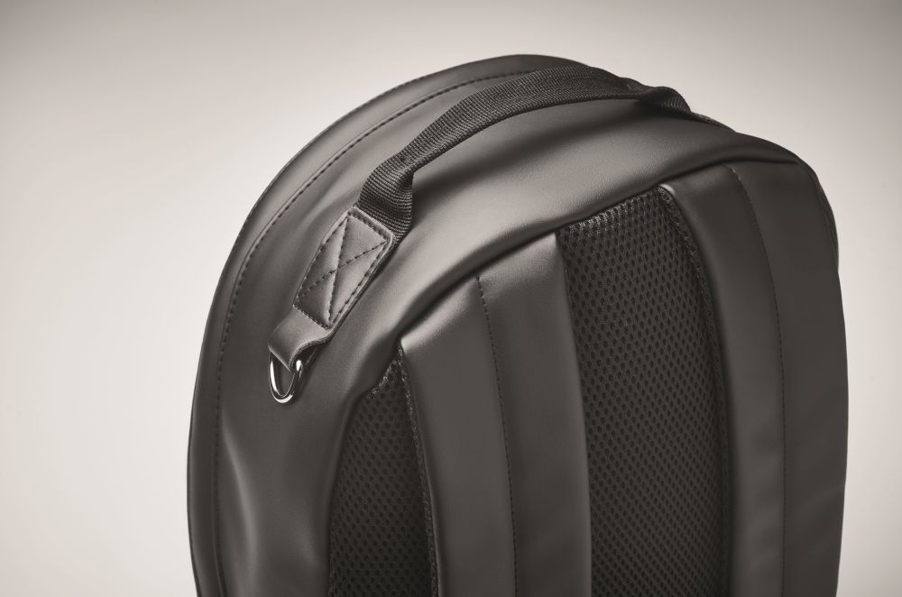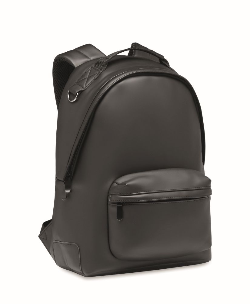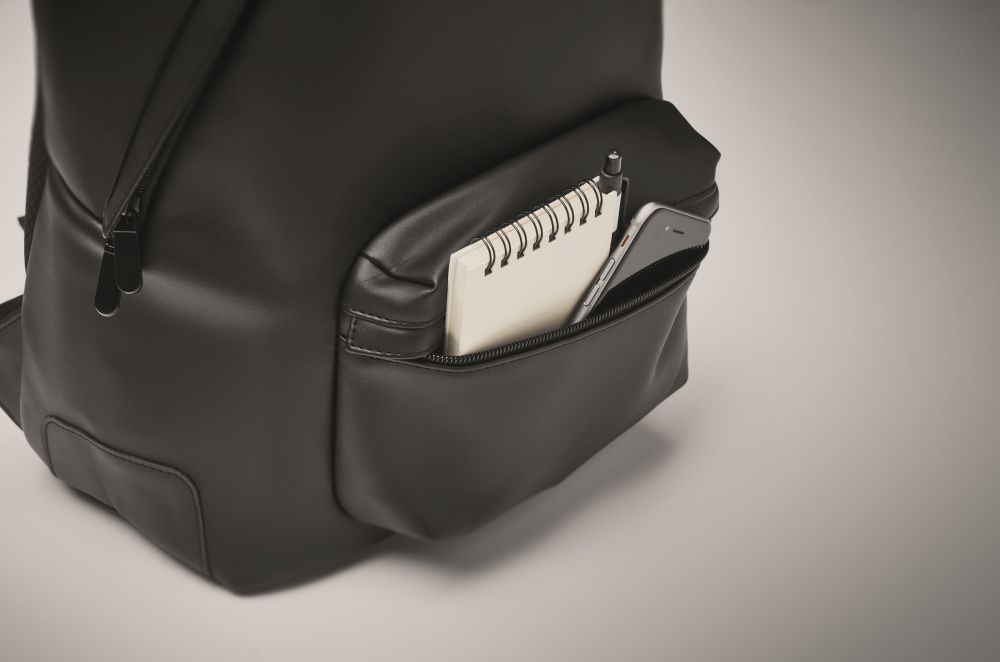 Batoh na 15 notebook z měkkého PU s polstrovanými zády a vyztuženým dnem. Přední kapsa na zip. Podšívka je z materiálu 210D RPET. Rozměry: 28x15x40cm