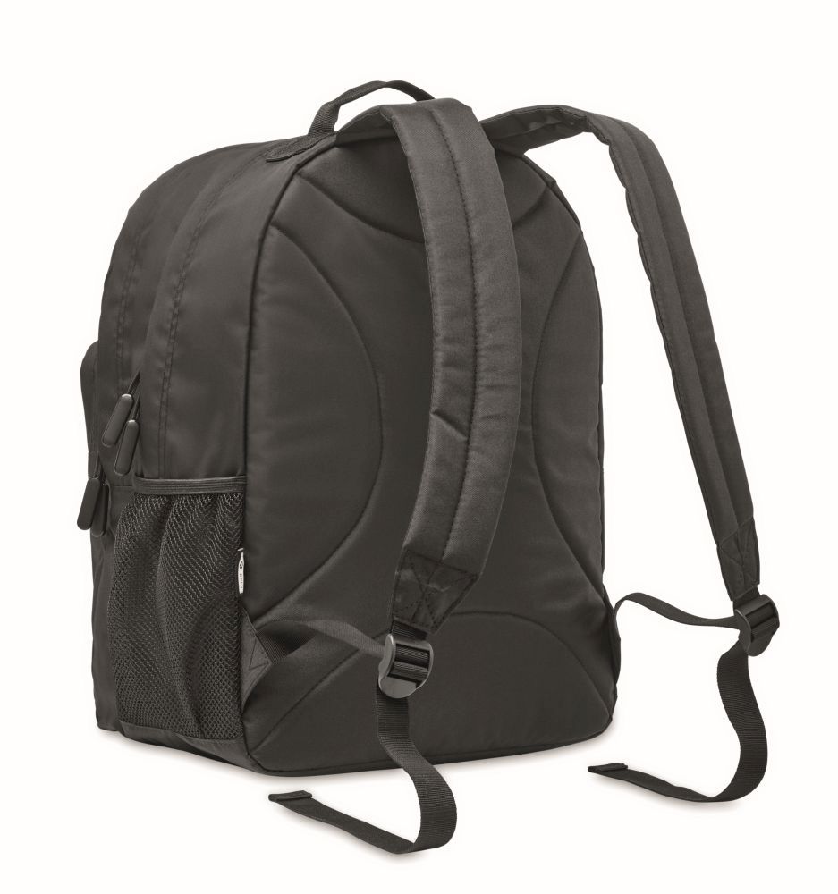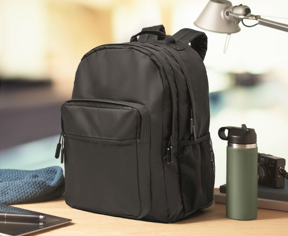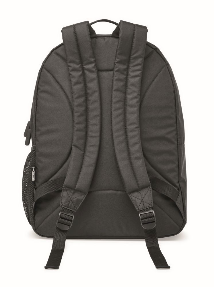 Batoh na 15 palcový notebook z polyesteru 300D RPET. Má 2 velké přihrádky na zip, dvojité přední kapsy na zip a boční síťované kapsy. Polstrovaná záda a ramenní popruhy. Rozměry: 32x21.5x43cm