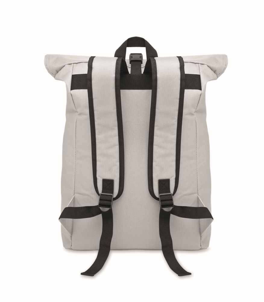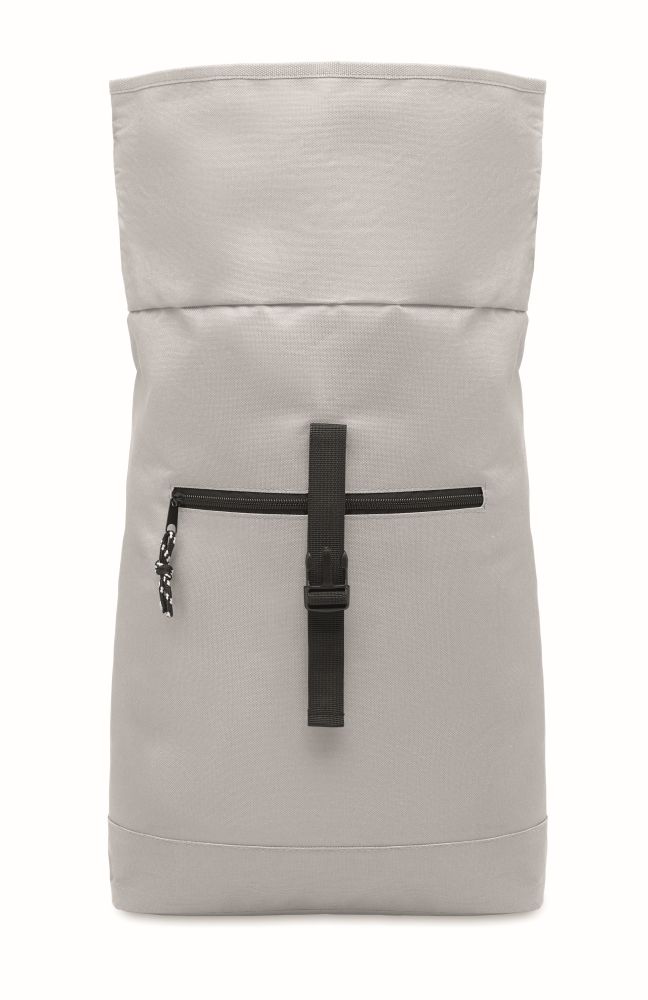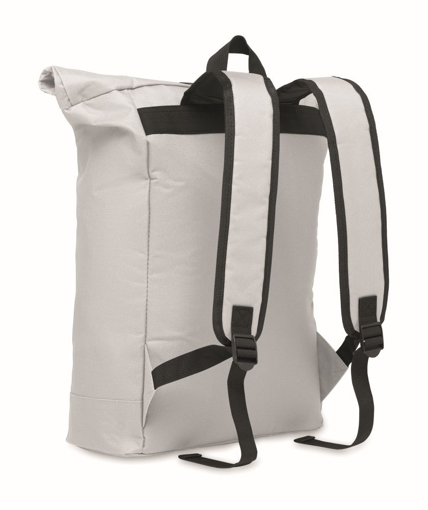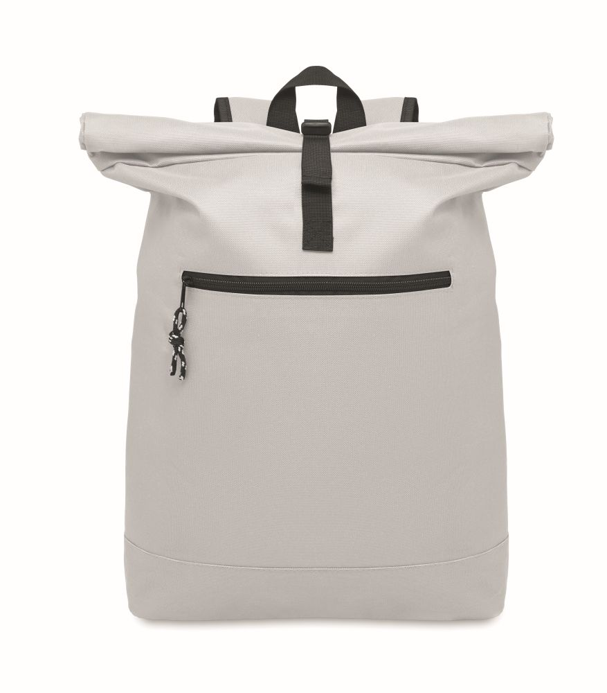 Rolovací batoh z polyesteru 600D na 15palcový notebook s polstrovanými zády. Přední kapsa na zip. Podšívka z materiálu 210D. Rozměry: 32x13x61cm