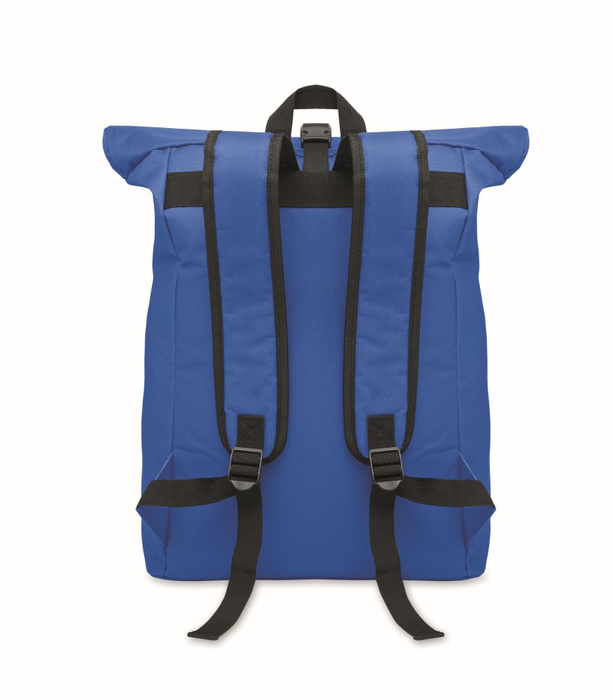 Rolovací batoh z polyesteru 600D na 15palcový notebook s polstrovanými zády. Přední kapsa na zip. Podšívka z materiálu 210D. Rozměry: 32x13x61cm