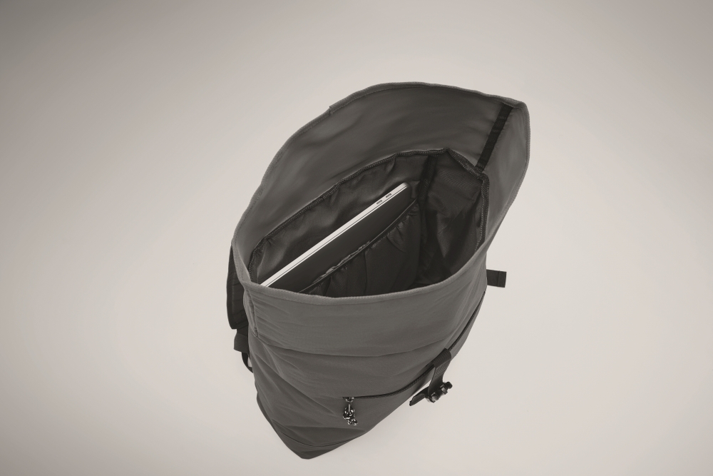Rolovací batoh z polyesteru 600D na 15palcový notebook s polstrovanými zády. Přední kapsa na zip.Podšívka z materiálu 210D. Rozměry: 32 x 13 x 61 cm. Materiál: PET