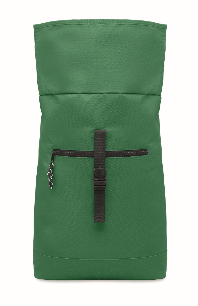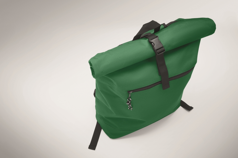Rolovací batoh z polyesteru 600D na 15palcový notebook s polstrovanými zády. Přední kapsa na zip.Podšívka z materiálu 210D. Rozměry: 34 x 13 x 61 cm. Materiál: PET