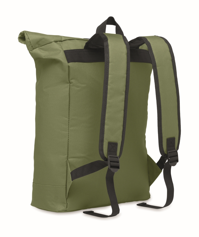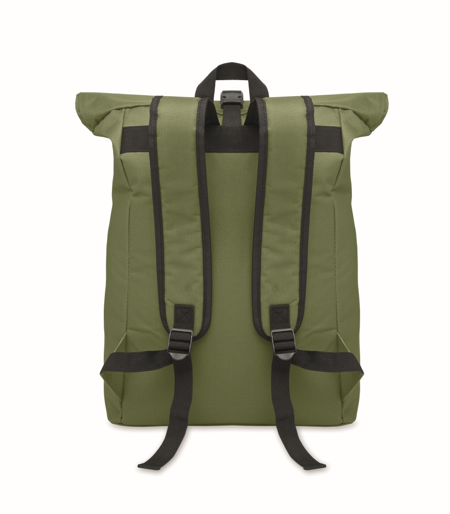 Rolovací batoh z polyesteru 600D na 15palcový notebook s polstrovanými zády. Přední kapsa na zip.Podšívka z materiálu 210D. Rozměry: 33 x 13 x 61 cm. Materiál: PET