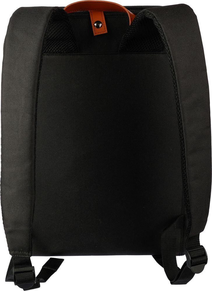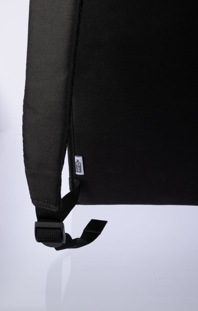 Polyesterový voděodolný rPET batoh z Oxford tkaniny s plně plochou přední stranou. Batoh má kapsu na notebook (15 palců) a uvnitř síťovanou kapsu s nastavitelnými popruhy. Obsahuje PU smyčku a PU magnet. Materiál: RPET Rozměry: 29 x 9 x 43 cm