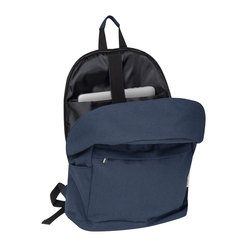 Batoh vyrobený z recyklované bavlny s polstrovanými ramenními popruhy, zadní částí a přihrádkou na notebook. Integrovaná přihrádka na zip na zadní části nabízí zvýšenou ochranu proti krádeži. Rozměry: 34 x 14 x 46 cm