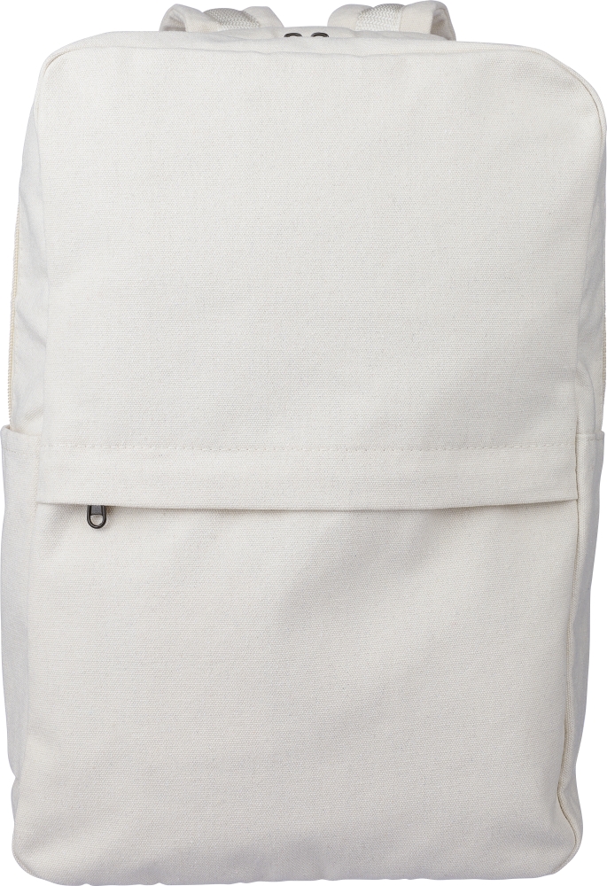 Batoh z recyklované polybavlny (330 g/m2) s podšívkou z polyesteru 210D. Má velkou přihrádku na zip s polstrovanou přihrádkou na 15palcový notebook, dvě vnitřní přihrádky a dvě vnější přihrádky, včetně boční přihrádky a malé přední kapsy na zip. Design zahrnuje polstrované nastavitelné popruhy a rukojeť. Kapacita: 14 l. Nosnost: 13 kg. Rozměry: 28 x 12 x 43 cm