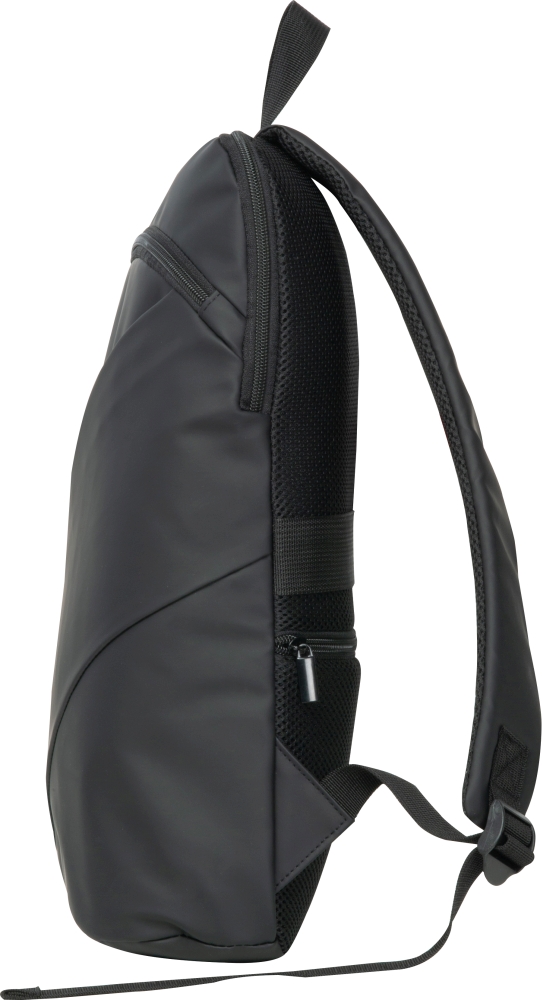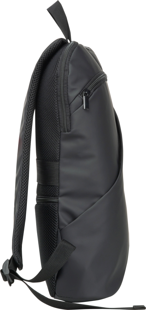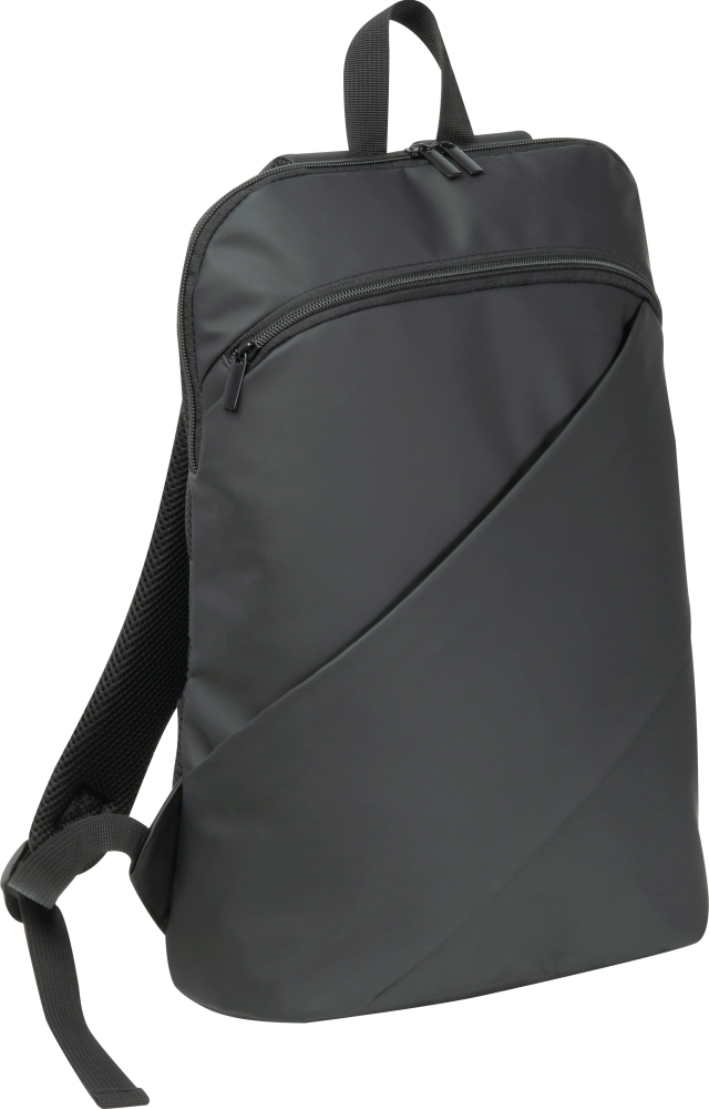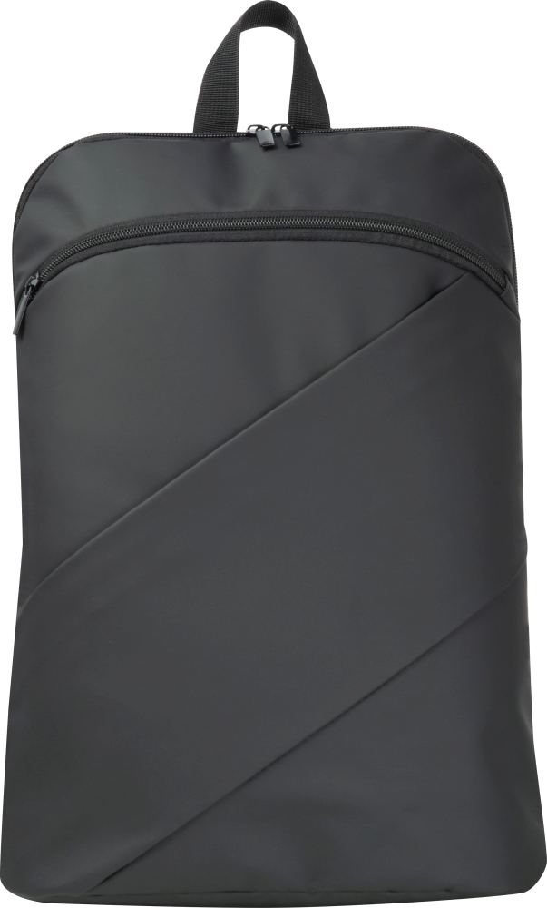 Batoh z umělé kůže se dvěma šikmými lesklými zipy na přední straně, poutkem na zavěšení, dvěma pohodlnými ramenními popruhy a tajnou kapsou proti krádeži. Rozměry: 30 x 11 x 42,5 cm
