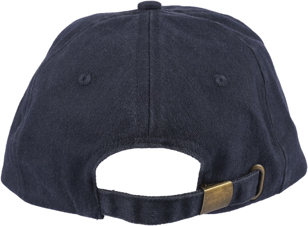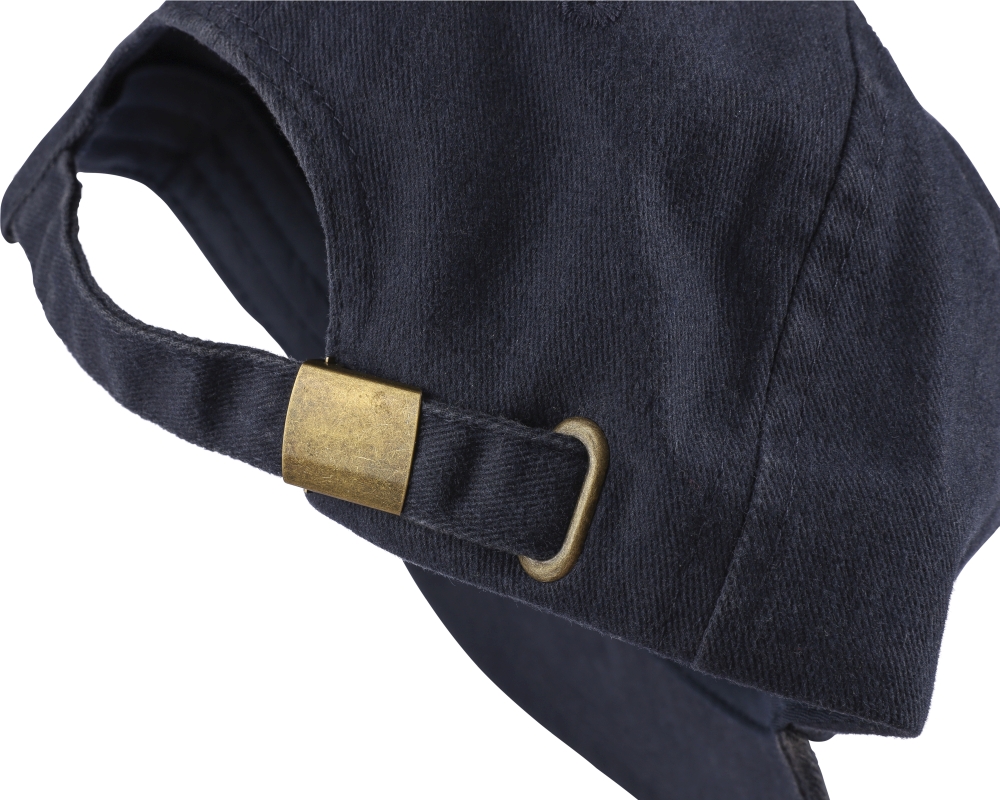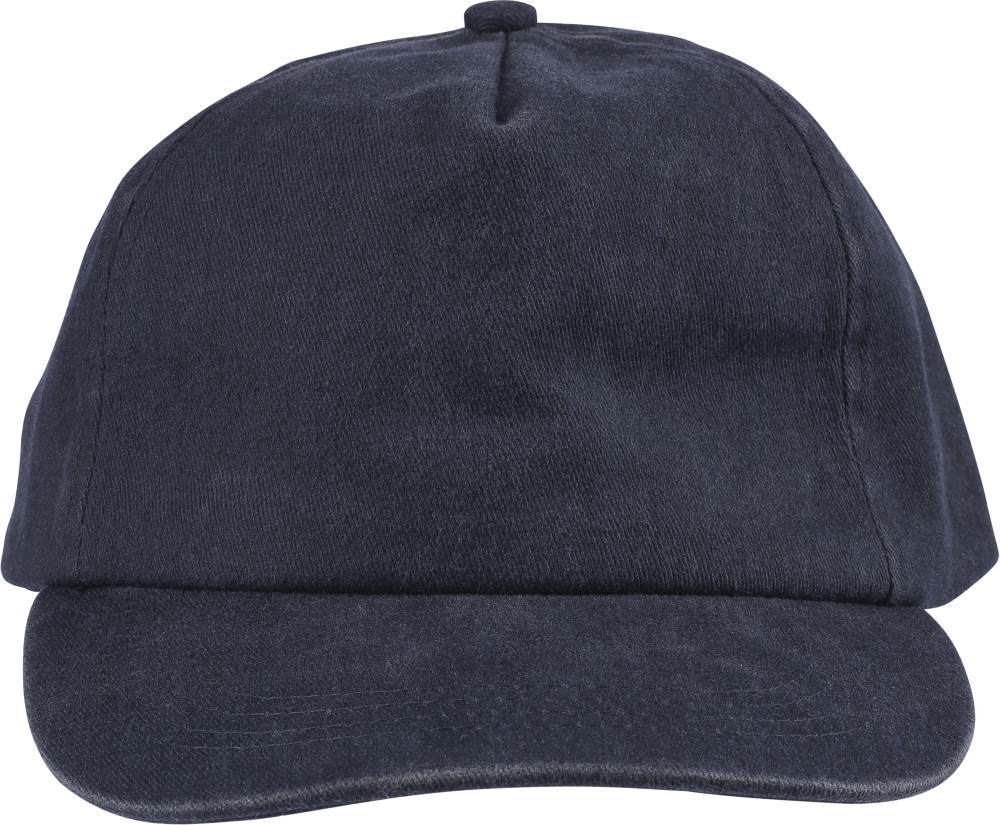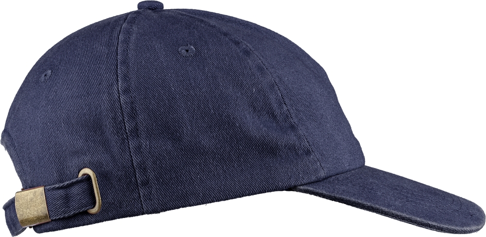 Bavlněná kšiltovka (240 g/m2) se sepranou povrchovou úpravou, s 5panelovým designem a 7 cm kšiltem. Nastavitelný střih se zapínáním na mosaznou přezku. Uvnitř není podšívka.