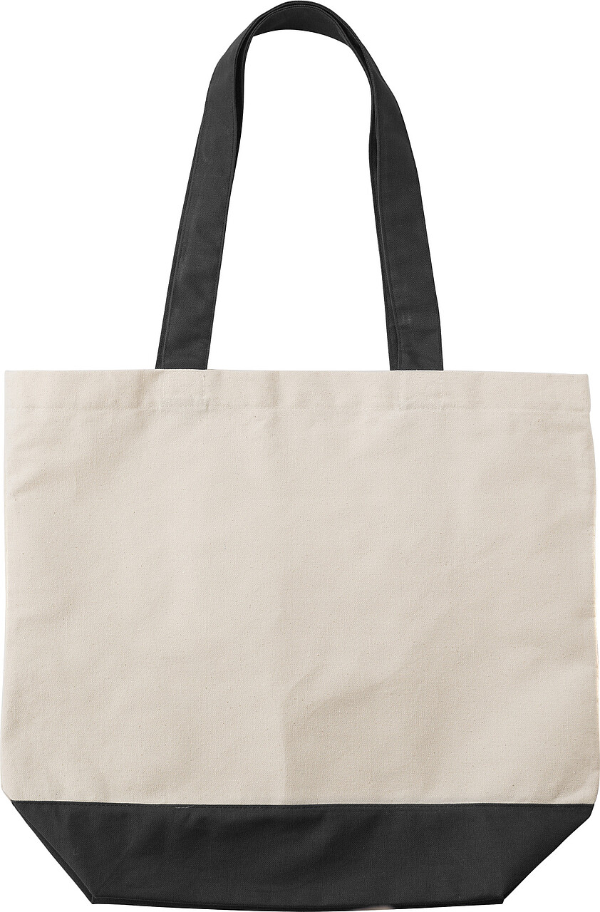 Bavlněná nákupní taška s barevnými detaily a odpovídajícími uchy, má jednu velkou přihrádku. Rozměry: 45 x 40 x 15 cm