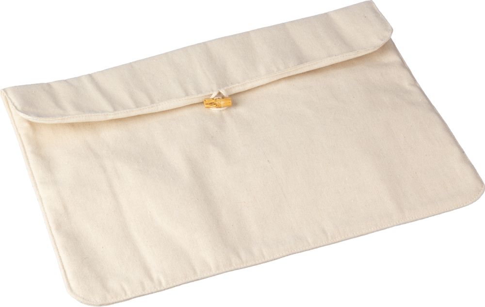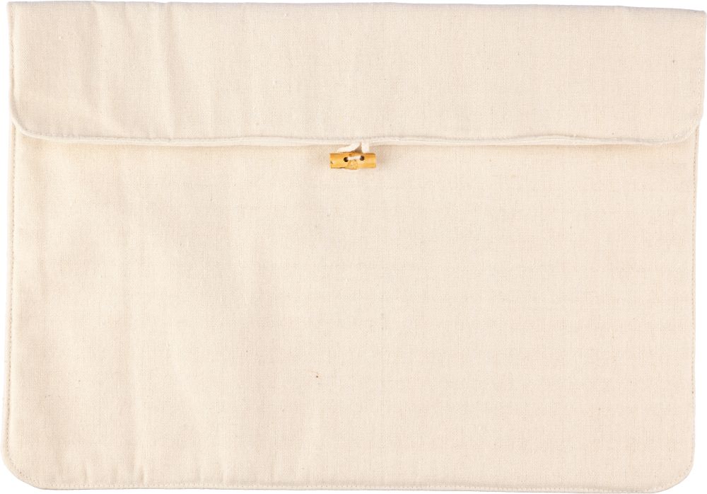 Bavlněná (220 gr/m2) taška na notebook s bavlněnou podšívkou (120 gr/m2) a zapínáním na bambusové lano. Vhodné pro 15palcový notebook." Materiál: bavlna Rozměry: 39 x 0,3 x 20,8 cm