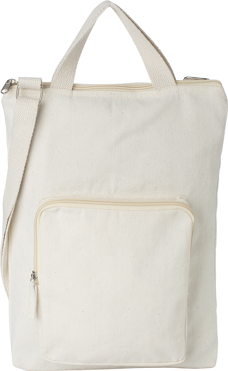 Bavlněná taška na notebook (15"). Jedna velká a jedna malá přihrádka na zip. Dvě krátké rukojeti a jeden nastavitelný ramenní popruh. Rozměry: 36 x 27 x 2 cm