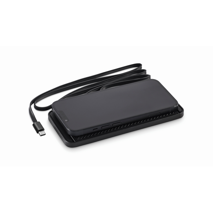 Bezdrátová 15W nabíječka do auta ve formě protiskluzové podložky z PVC. Okraje lze oříznout na potřebnou velikost. Integrovaný kabel USB A, délka 120 cmRozměry: 15 x 7 x 0,5cm