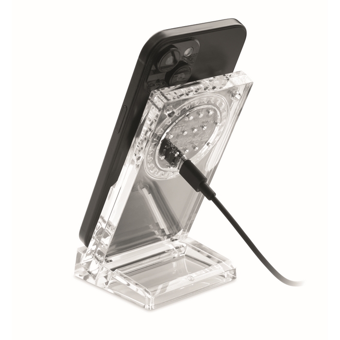Bezdrátová 15W nabíječka a stojánek z akrylu. Po připojení ke zdroji napájení bude vaše mobilní zařízení nabíjet bezdrátově. Výstup: 9V/1,67A (15W) pro rychlé nabíjení.Rozměry: 12,4 x 6,9 x 7,1cm