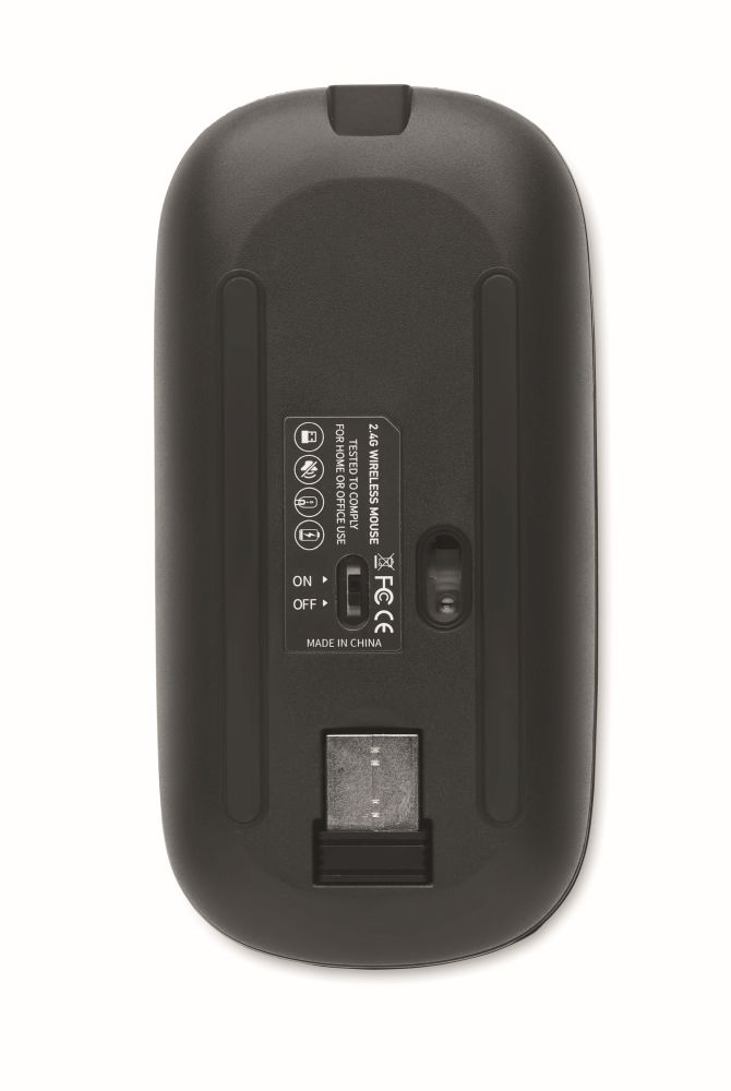 Bezdrátová optická myš z ABS s USB dobíjecí baterií 500 mAh. Rozměry: 112x57x25 cm