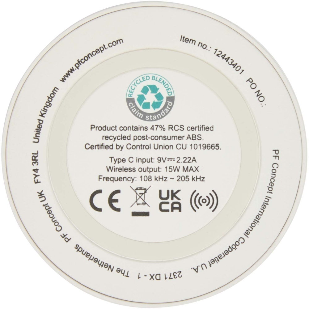 Bezdrátová nabíjecí podložka o výkonu 15 W z recyklovaného plastu, bílá