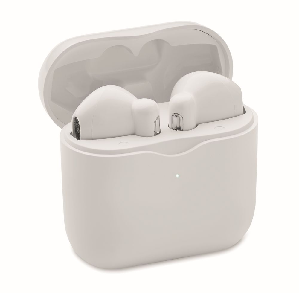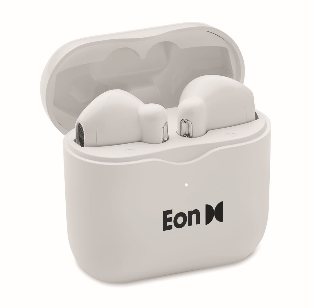 Bezdrátová stereofonní sluchátka True Wireless Stereo (TWS) 5.3 z ABS. S mikrofonem, vestavěnou 30mAh baterií a nabíjecí krabičkou 200 mAh. Doba hraní cca. 4 hodiny. Automatické párování. Rozměry: 46x44x22 cm