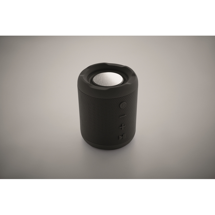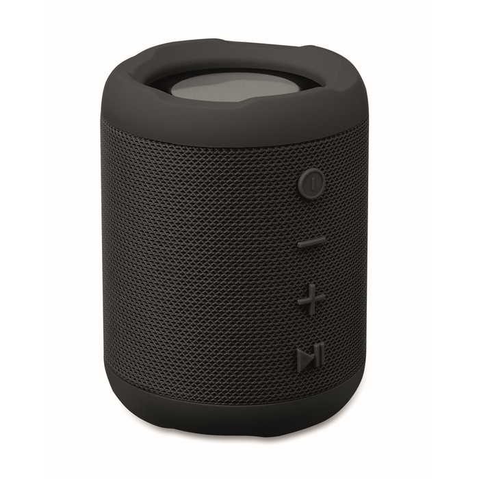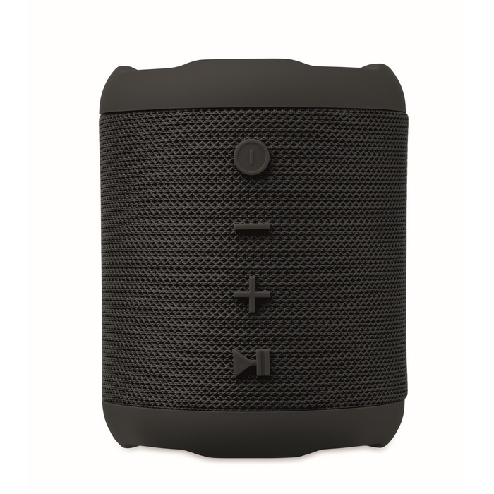 Bezdrátový 5.0 reproduktor z ABS s RPET tkaninou. Obsahuje dobíjecí baterii Li-ION 800 mAh. Port pro SD kartu a kabel AUX/USB. Výstupní data: 5W, 3Ohm a 5V. Doba přehrávání cca 3h.Rozměry: 11 x 8,5 x 8,5cm